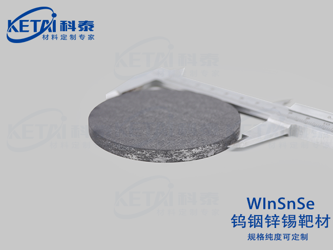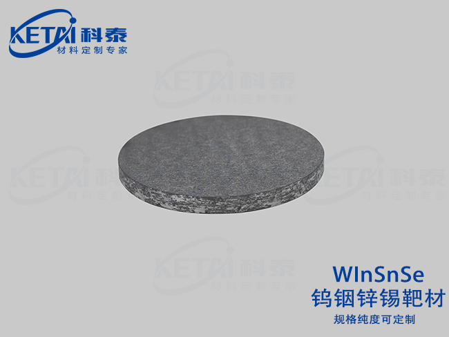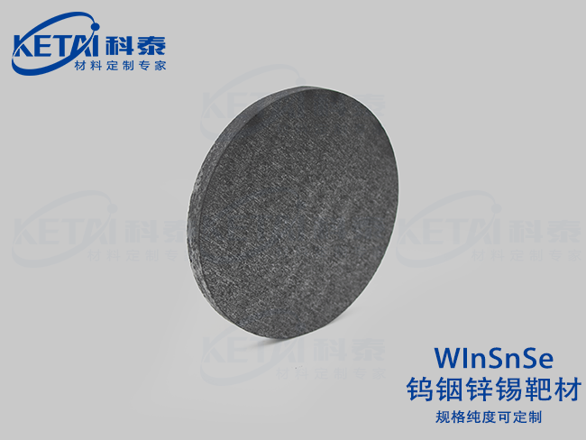 钨铟锌锡靶材(WInSnSe)是以高纯钨(W)、铟(In)、锡(Sn)及硒(Se)为原料,通过机械合金化与真空热压烧结技术制备的四元硫族化合物靶材,纯度≥99.98%,密度≥6.8 g/cm³。其具备宽光谱吸收(0.8-1.5 eV可调带隙)、高热电优值(ZT≥0.8 @500K)及柔性兼容特性,适配磁控溅射、化学气相沉积(CVD)等工艺,用于沉积柔性光伏薄膜、红外探测器及热电转换器件功能层。产品通过精准元素配比(W:In:Sn:Se=1:1:1:4)、纳米晶粒控制(≤100nm)及低缺陷设计,满足新一代柔性电子、智能穿戴及空间光伏技术的核心材料需求,是光电-热电器件集成化与微型化的关键镀膜材料。