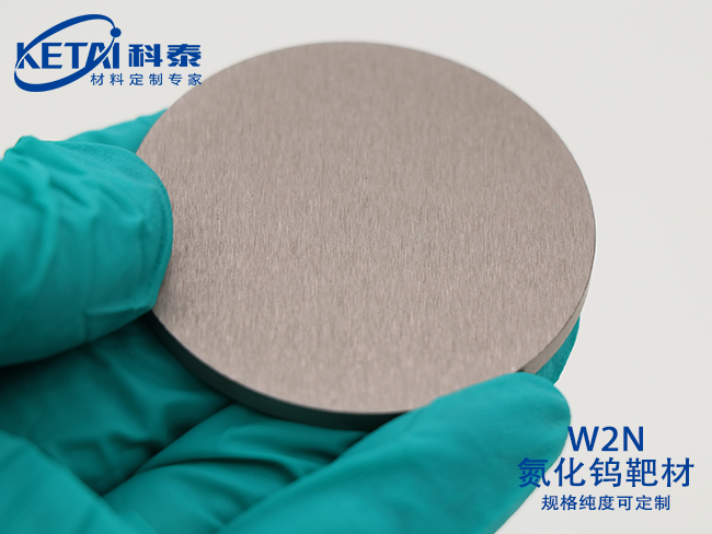氮化钨靶材采用高纯钨粉(≥99.99%)与高纯氮气(≥99.999%)为原料,通过 反应等离子烧结(RPS) 工艺制备的高硬度、高导电性复合陶瓷靶材。核心特性包括: