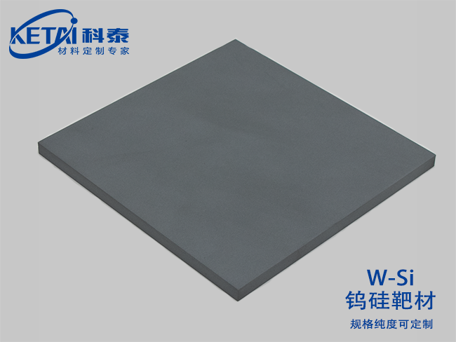 钨硅靶材采用电子束熔炼钨粉(≥99.995%)与半导体级多晶硅(≥99.9999%),通过反应等离子烧结(RPS)+热等静压(HIP)工艺制备的超高温互连功能靶材。核心特性包括: